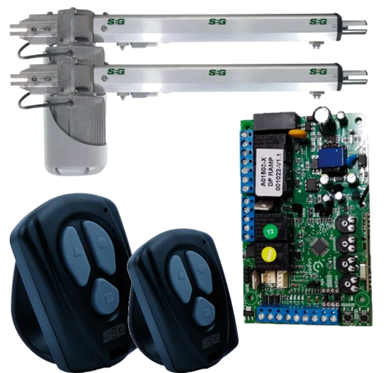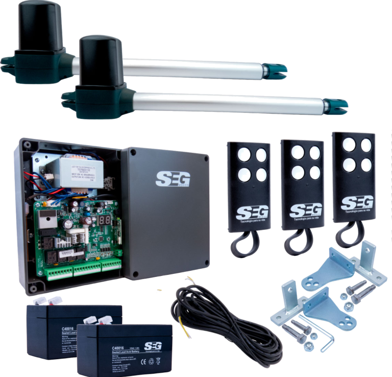 Cuenta con un motor potente de doble brazo, ideal para portones abatibles, y permite el control mediante control